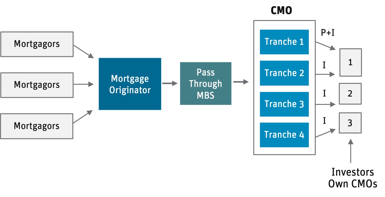 - Agency collateralized mortgage obligations (Agency CMOs) are structured securities that reallocate the principal and interest (P&I) of an existing pass-through Agency RMBS to investors based on specific rules. The most common Agency CMO structure is a sequential-pay bond that allocates principal to investors in a specific sequence so certain investors are paid off early while others are paid off later.