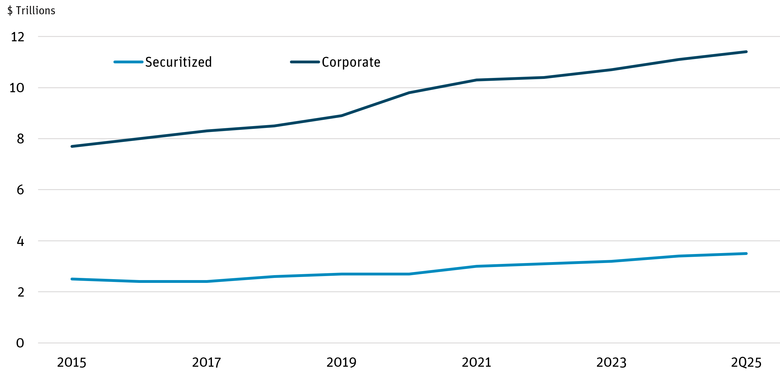 Figure 3: Outstanding Debt in Securitized and Corporate Credit Markets