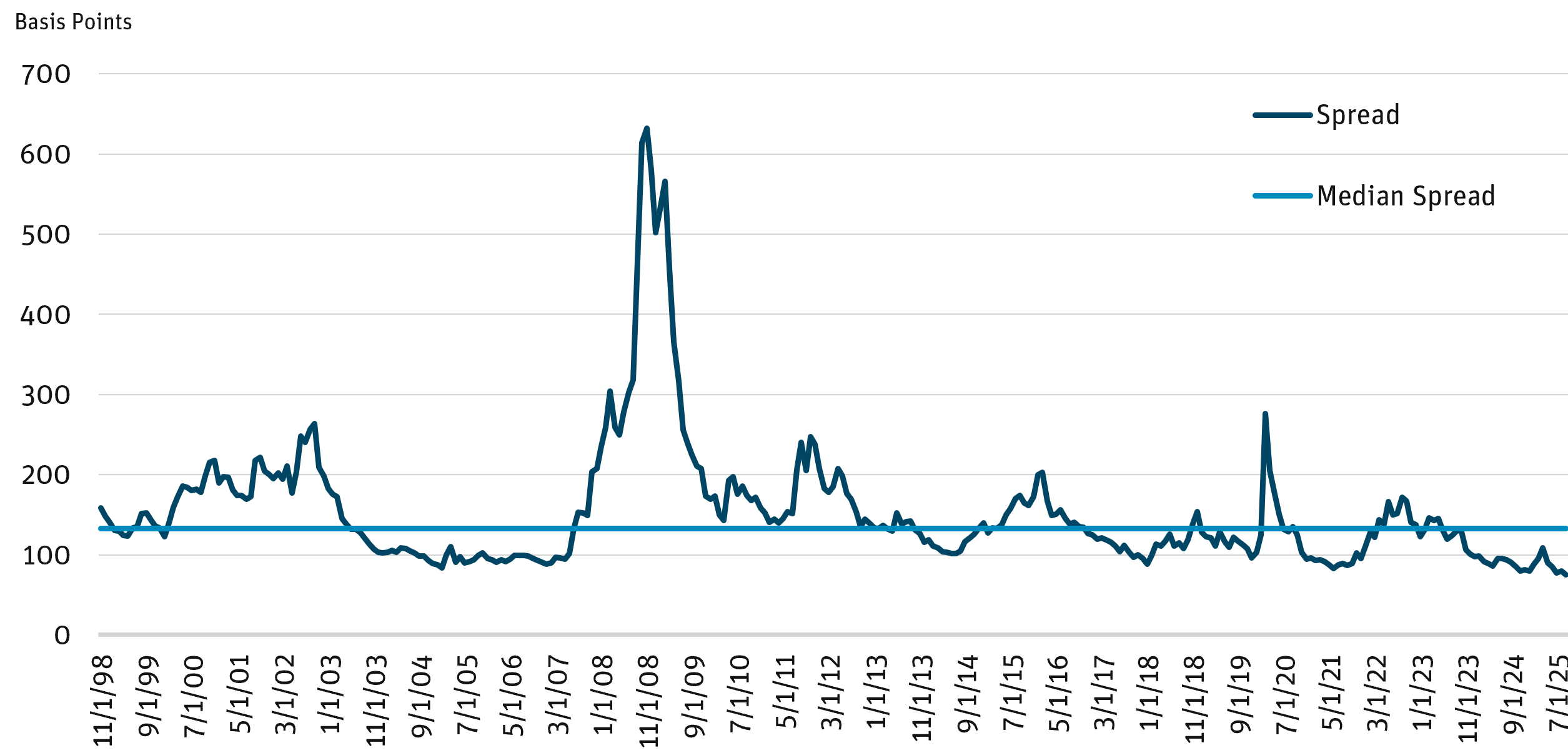 Figure 4: Average Spread of IG Corporate Bond Index (1998–2025)