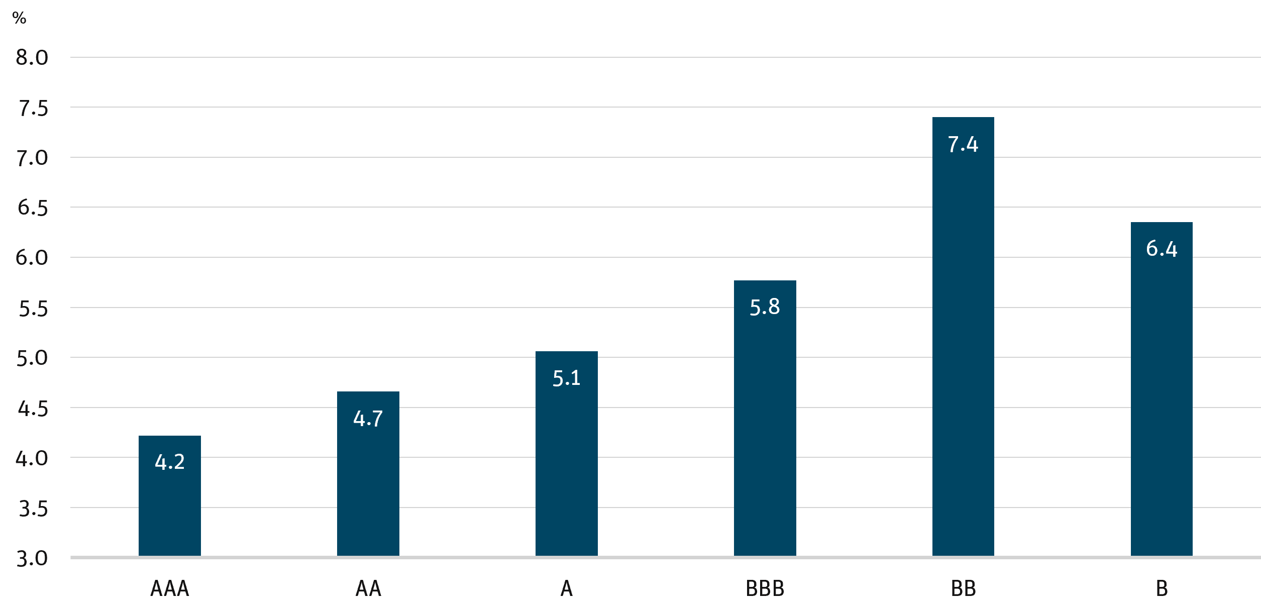 7 Reflects the Bloomberg U.S. Corporate AAA, AA, A, BAA, and Bloomberg BB and B U.S. HY indices.